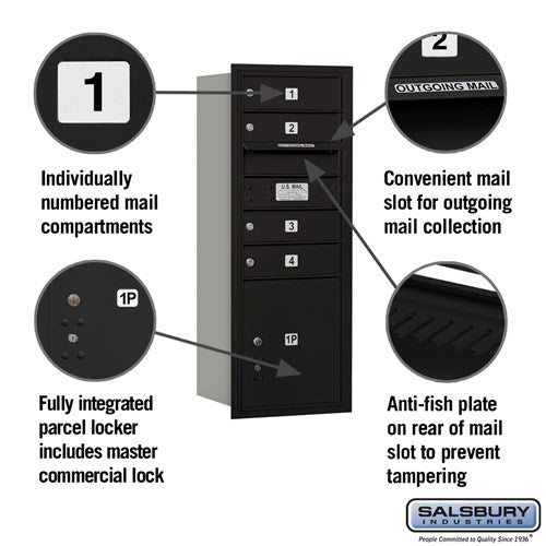 10-Door High Recessed Mailbox with Parcel Locker - Black, Rear Loading