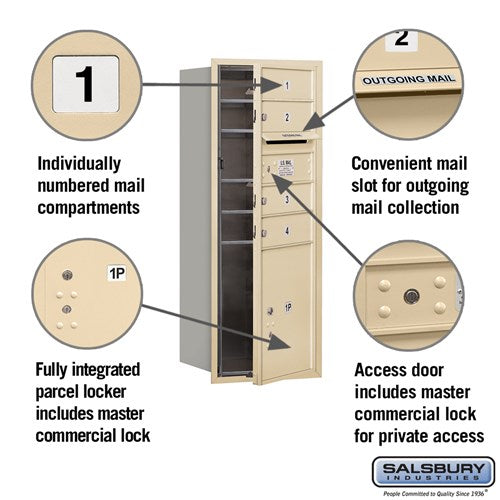 10 Door High Recessed Mounted 4C Horizontal Mailbox with Parcel Locker in Sandstone