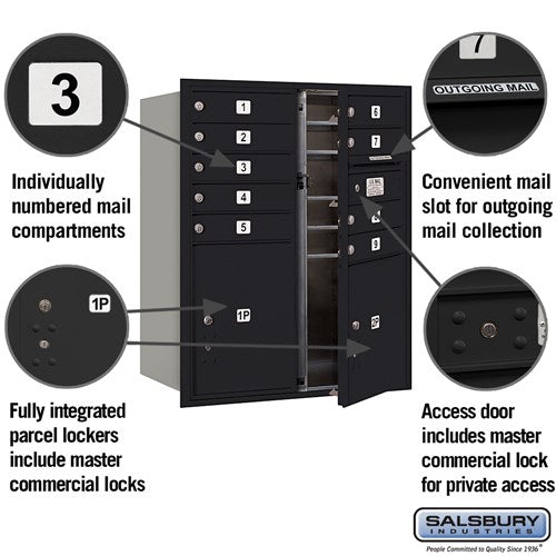 | Outgoing Mail Compartment | Includes master commercial lock access door and mail slot with weather protection hood |