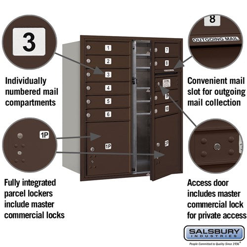 10-Door Bronze Mailbox with Parcel Lockers