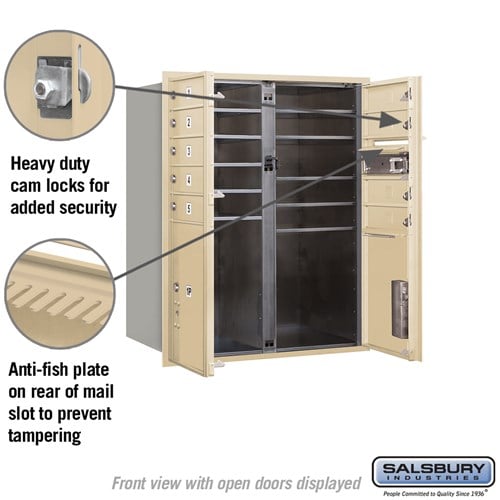 10 Door High Recessed Mounted 4C Horizontal Mailbox with Parcel Lockers - Sandstone - Private Access