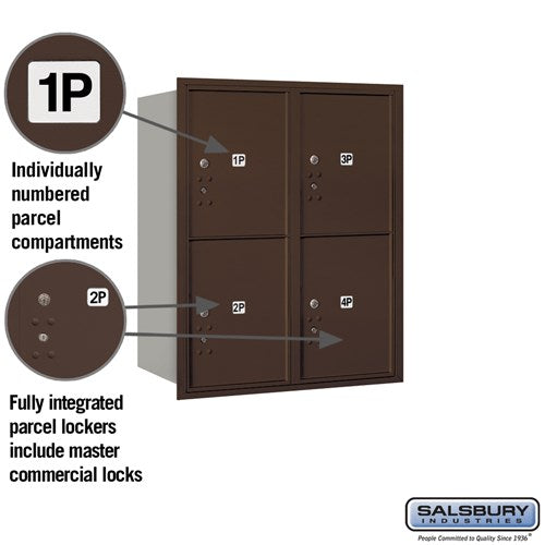 10-Door High Recessed Mounted Parcel Locker with 4 Parcel Lockers in Bronze - Rear Loading