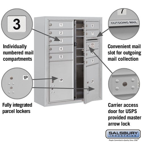 10 Door High Surface Mounted 4C Horizontal Mailbox with Parcel Lockers and USPS Access