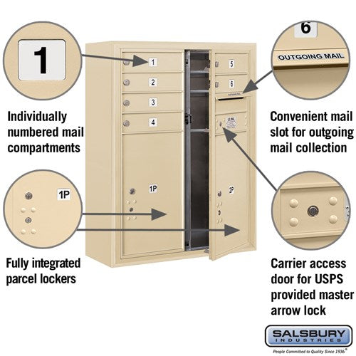 This 10 Door High Surface Mounted 4C Horizontal Mailbox in Sandstone is designed for USPS access and features durable aluminum construction, front loading access, and parcel lockers for secure mail storage.
