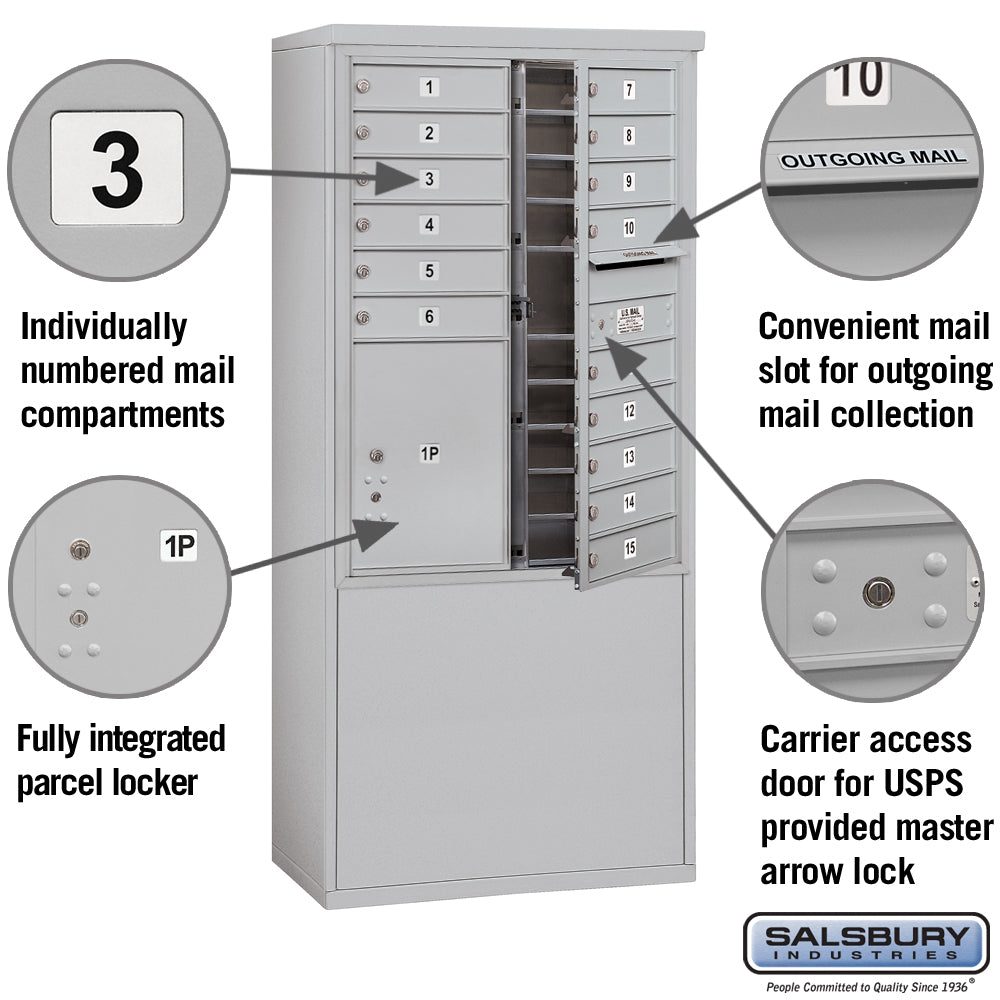 11 Door High Free-Standing 4C Horizontal Mailbox with Parcel Locker in Aluminum