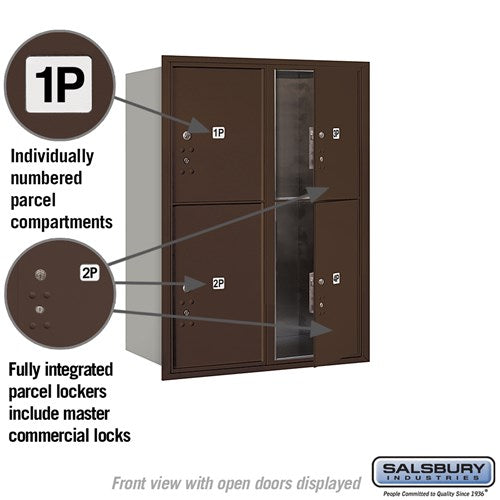 11 Door High Recessed Mounted 4C Horizontal Parcel Locker with 2 Parcel Lockers in Bronze - Front Loading
