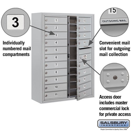 11 Door High Surface Mounted 4C Horizontal Mailbox with 20 Doors in Aluminum for Private Access