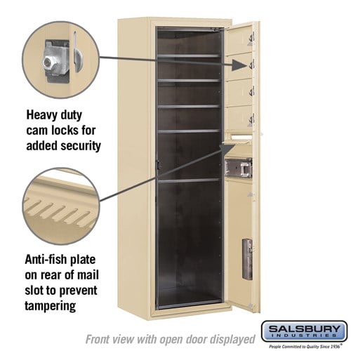This sandstone mailbox unit combines robust functionality with a sleek design, making it a perfect addition to modern residential or commercial spaces. Its durable aluminum construction and powder-coated finish ensure longevity while complementing a variety of architectural styles. Place it in a lobby or entryway to provide a secure and stylish solution for mail and package storage. This mailbox is not just a utility; it's a statement of thoughtful design and practicality.