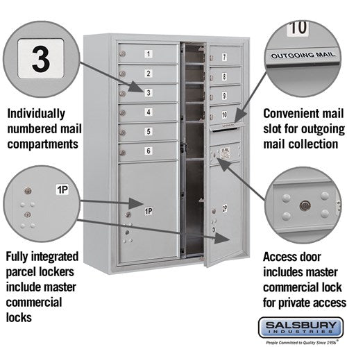 11 Door High Surface Mounted Parcel Locker with 4 Parcel Lockers in Aluminum for Private Access