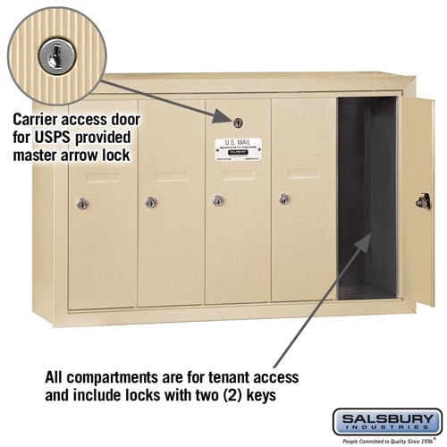 Vertical Mailbox with 5 Compartments - Sandstone - Surface Mounted - USPS Approved
