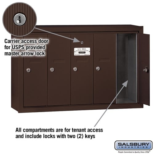 Bronze Vertical Mailbox with 5 Compartments - Surface Mounted - USPS Approved