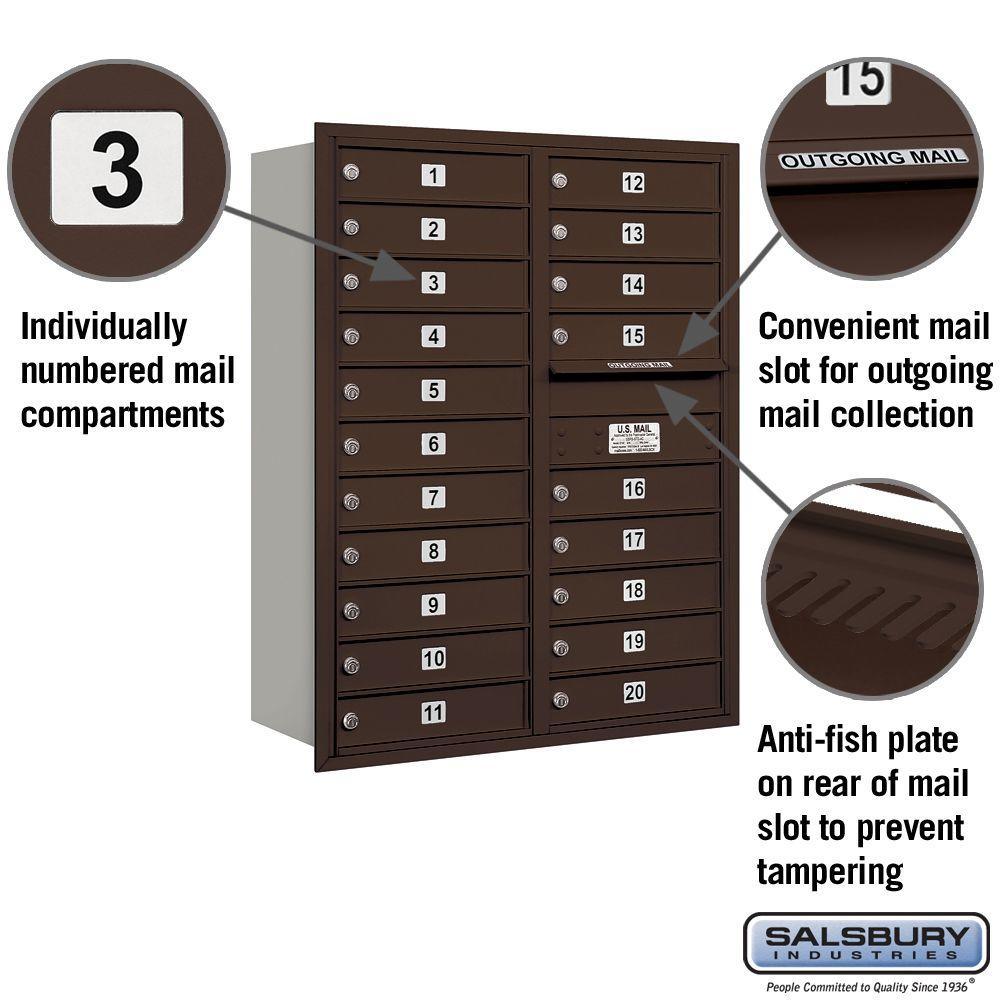 Salsbury 3700 Series 4C Rear-Loading Mailbox, Bronze, 20 MB1 Doors