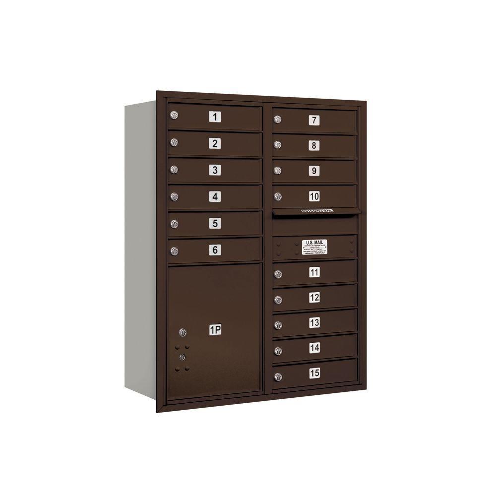 Salsbury 3700 Series 41 in. 11-Door High Rear-Loading 4C Horizontal Mailbox, Bronze, with 20 MB1 Doors (Private Use)