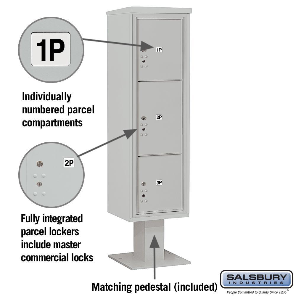 3400 Horizontal Series 3-Parcel Locker Pedestal Mount Mailbox