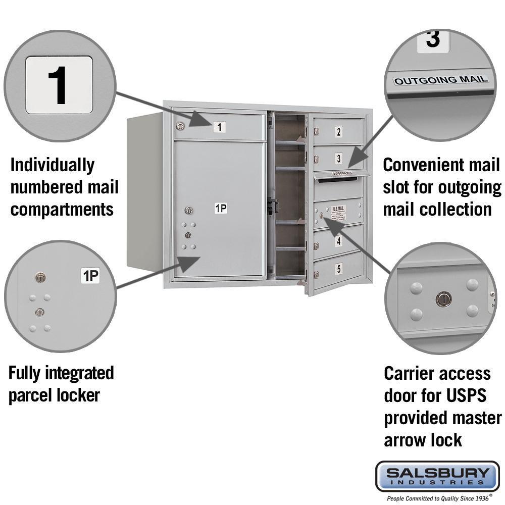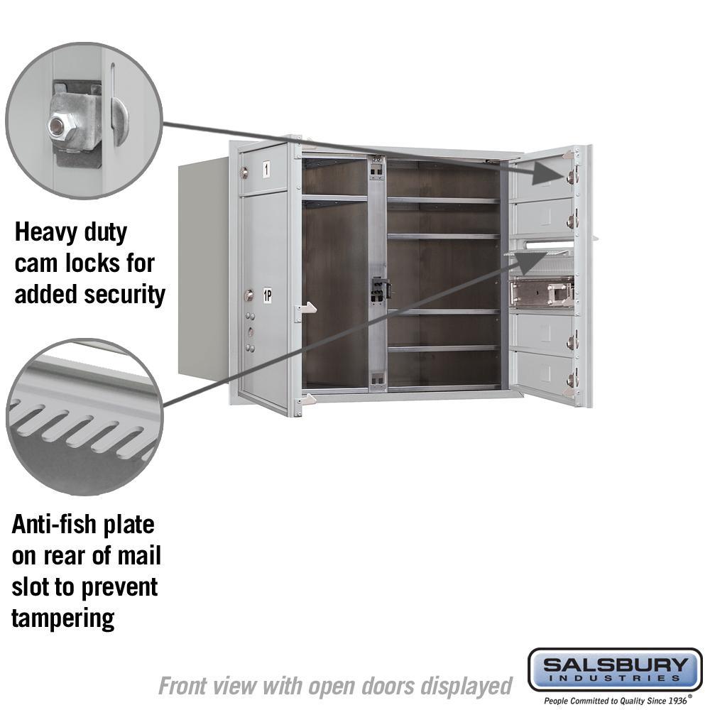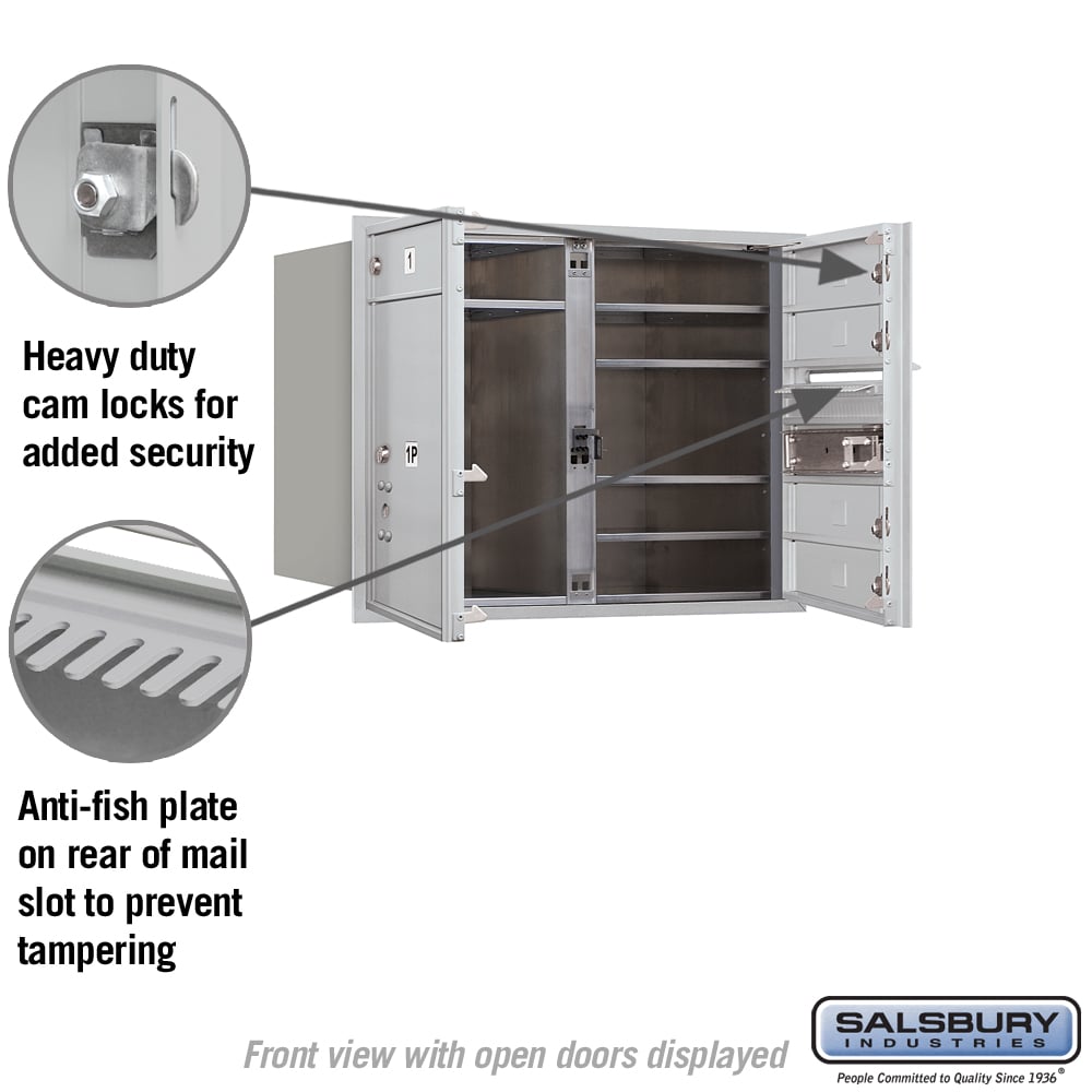Salsbury 3700 Horizontal Series Recessed Mount Mailbox, 5 Compartments + 1 Parcel Locker