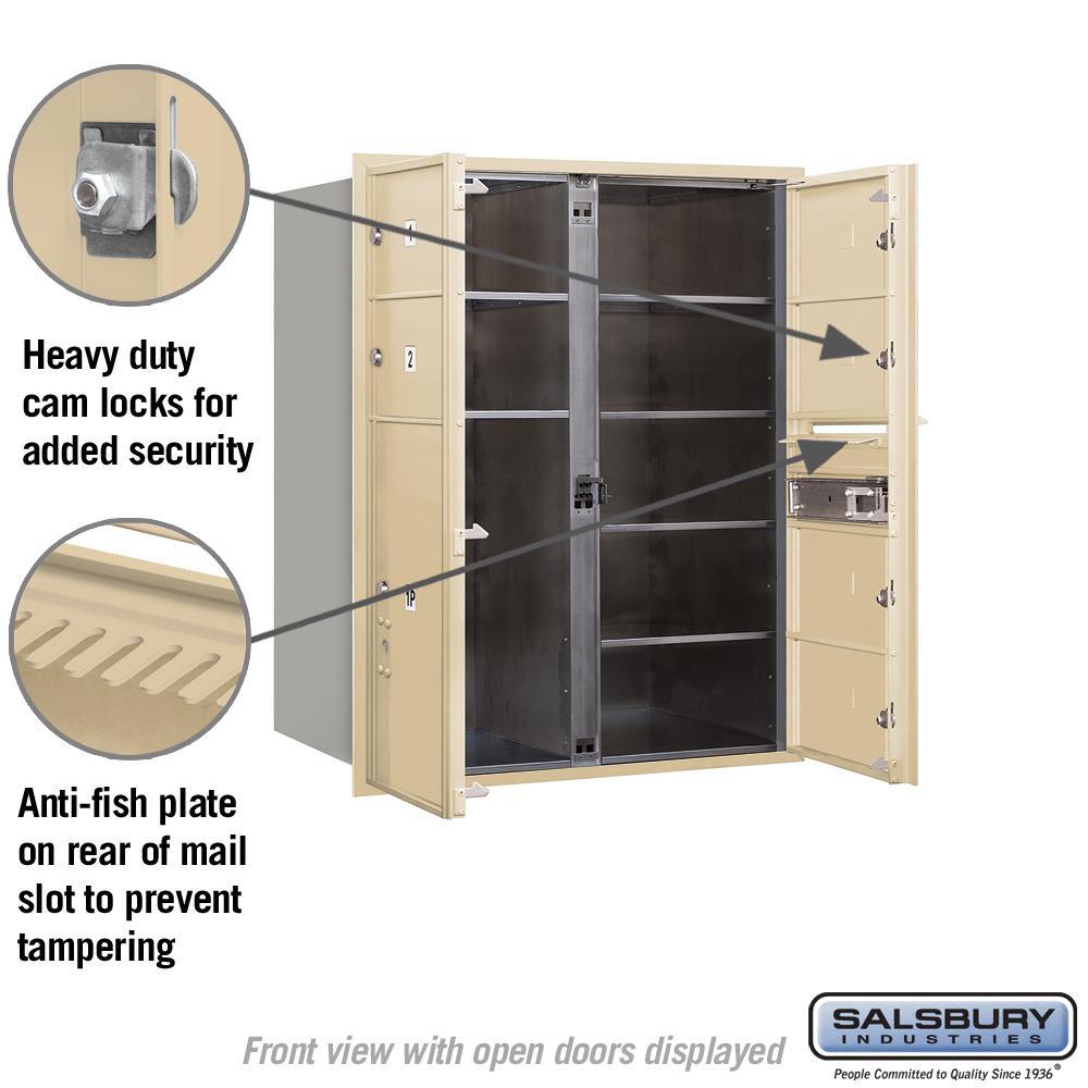Constructed of heavy duty aluminum and stainless steel hardware, Salsbury 3700 series high security recessed mounted 4C mailboxes can be accessed from the front through two (2) easy opening master door panels. These units provide a convenient means of installing 4C horizontal mailboxes in locations where walls can accommodate a recessed mounted installation. 4C recessed mounted horizontal mailboxes are durable and corrosion resistant that can be used indoors or outdoors and feature a powder coated finish in aluminum, bronze, gold and sandstone. All mailbox doors include a heavy-duty cam lock with a dust/rain shield and includes three (3) keys. The outgoing mail compartment includes a weather protection flap, mail slot and carrier access door, which includes master commercial locks with two (2) keys for private access, and anti-fish plate on rear of mail slot to prevent tampering of outgoing mail. Ideal when private centralized mail delivery is desired for apartments, condominiums, commercial buildings, residential developments, colleges, schools, private postal centers, corporate mail centers, military bases, government agencies and other applications. For U.S.P.S. delivery of mail, contact your local postmaster for approval. Salsbury Industries is an ISO 9001: 2008 certified company and has excelled in the field of manufacturing since 1936.