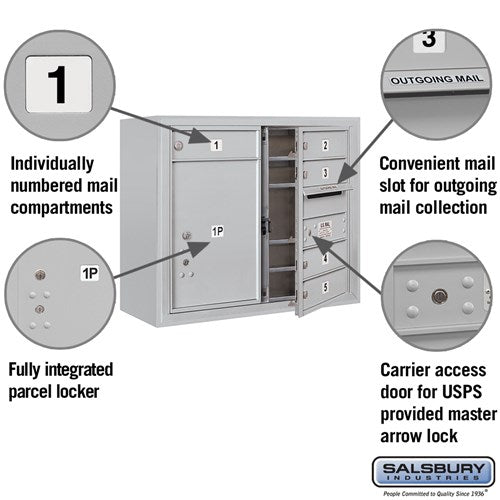 6 Door High Surface Mounted 4C Horizontal Mailbox with Parcel Locker and USPS Access
