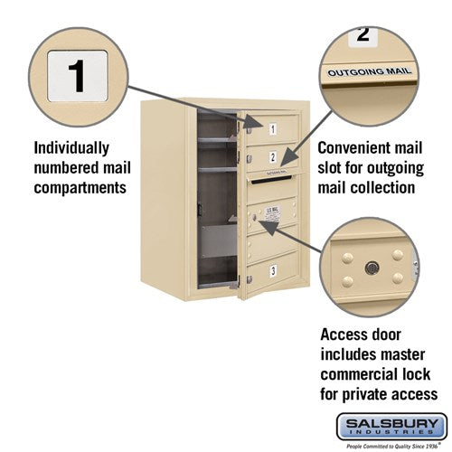 | Outgoing Mail Compartment | Includes master commercial lock access door and mail slot with weather protection hood |