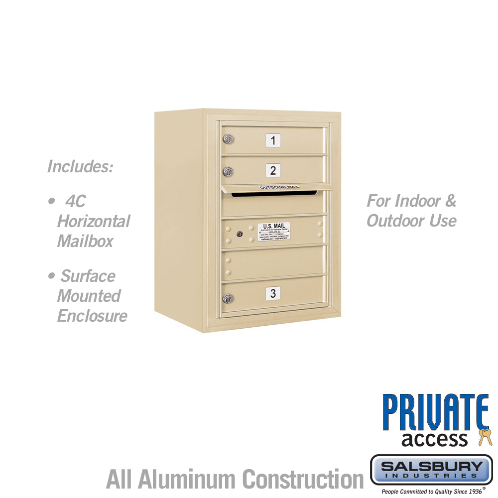 6 Door High Surface Mounted 4C Horizontal Mailbox with Private Access in Sandstone