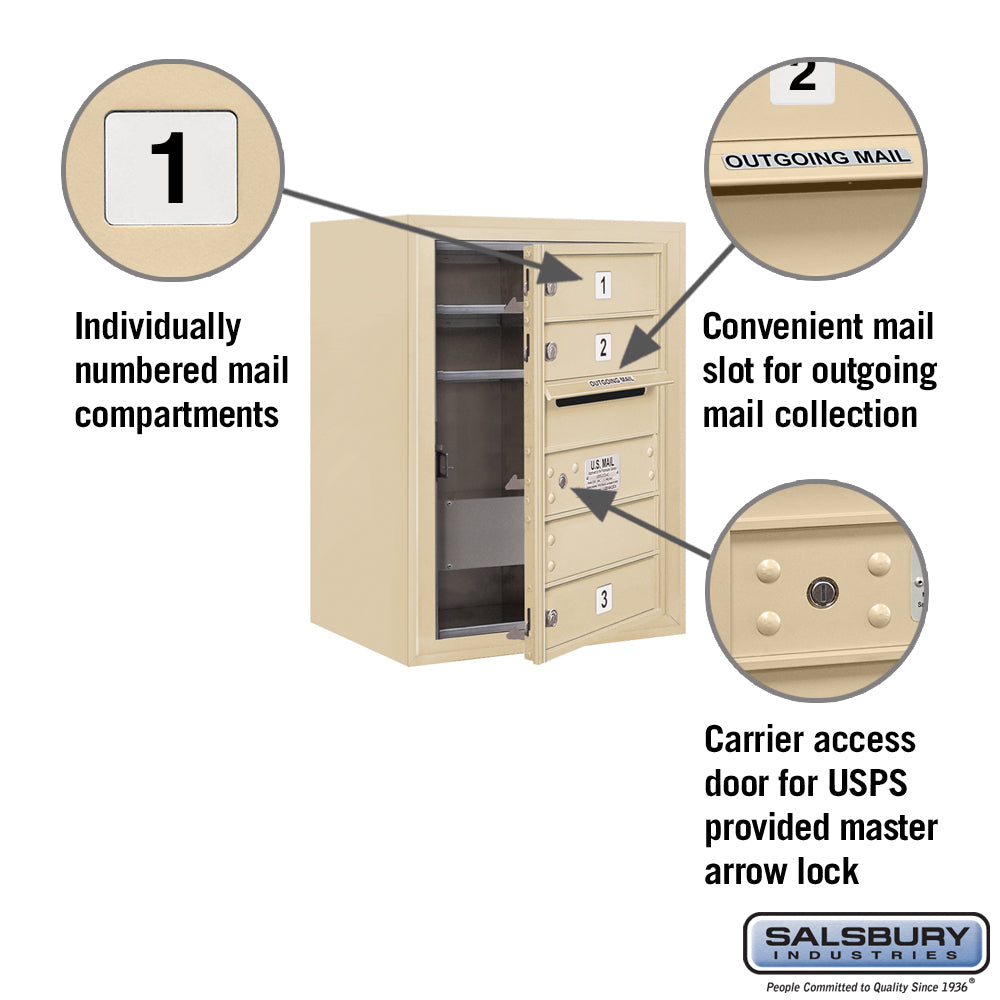 Outgoing Mail Compartment Includes mail slot with weather protection hood