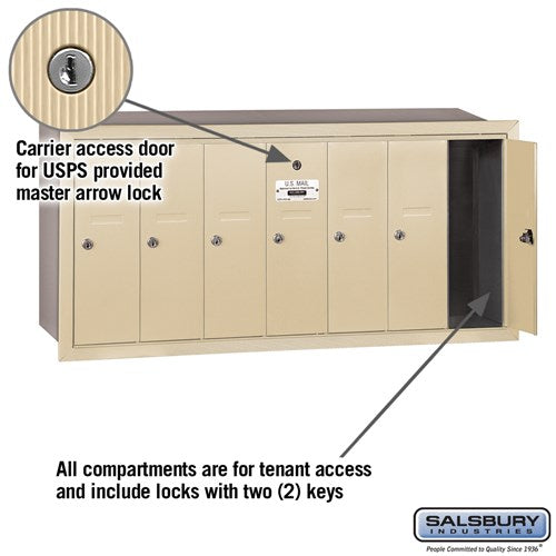 7-Door Sandstone Vertical Mailbox - Recessed Mounted - USPS Access