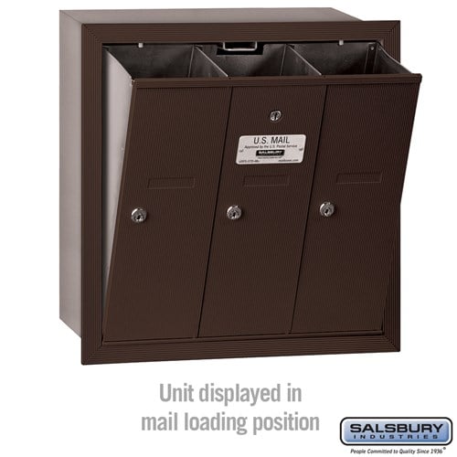 Bronze 3-Door Vertical Mailbox - Recessed Mounted - USPS Approved