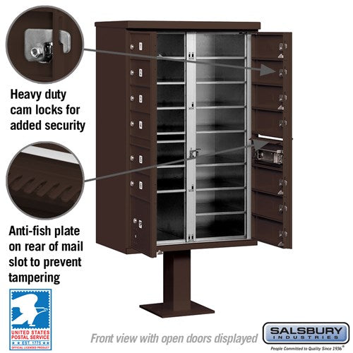 Cluster Box Unit with 13 Doors and Parcel Locker in Bronze with USPS Access
