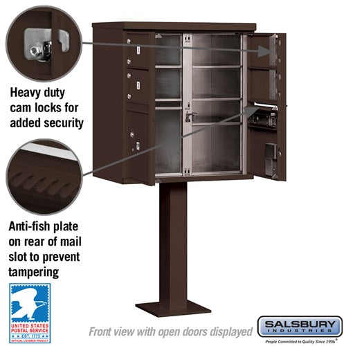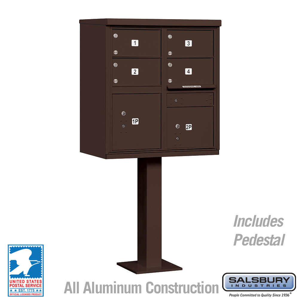 Cluster Box Unit with 4 Doors and 2 Parcel Lockers in Bronze with USPS Access