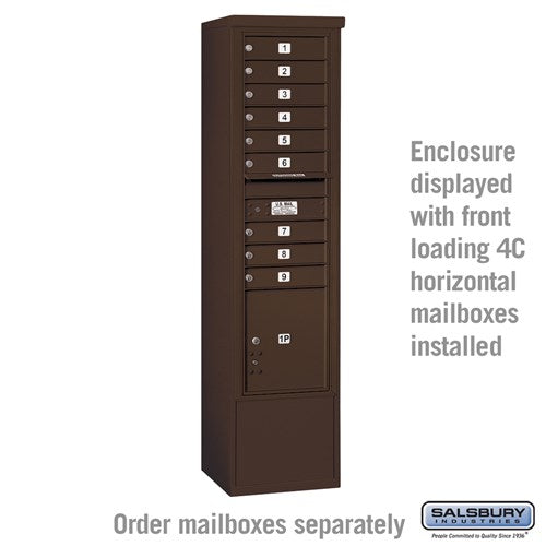 A: This enclosure is designed to mount Salsbury 3700 Series front loading 4C standard and custom horizontal mailboxes.