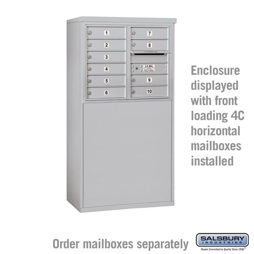 A: This enclosure is designed to mount Salsbury 3700 Series front loading 4C standard and custom horizontal mailboxes.