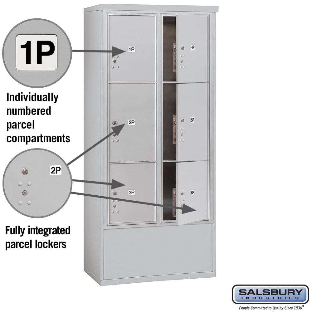 Maximum Height Free-Standing 4C Horizontal Parcel Locker with 6 Parcel Lockers in Aluminum with USPS Access