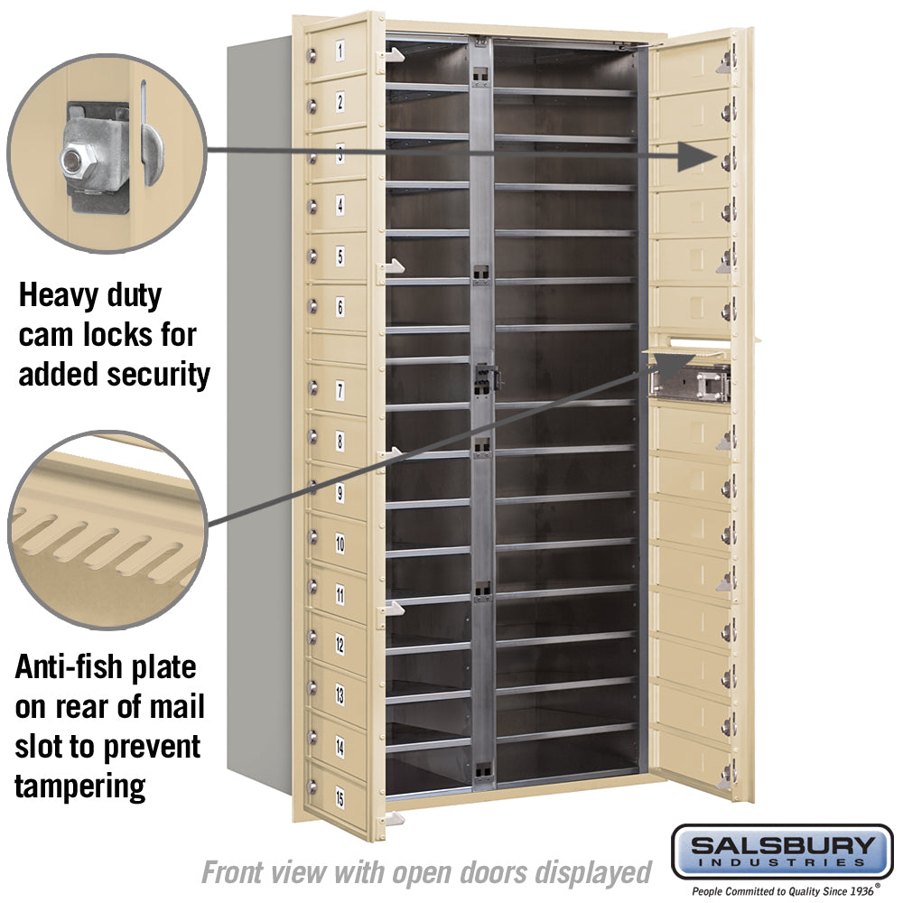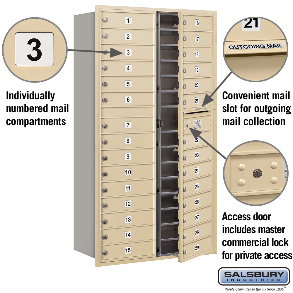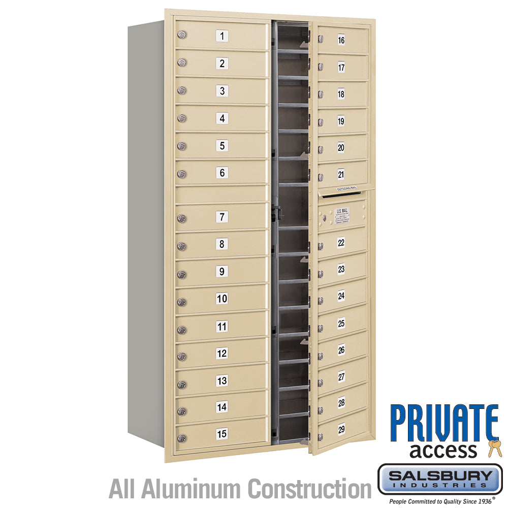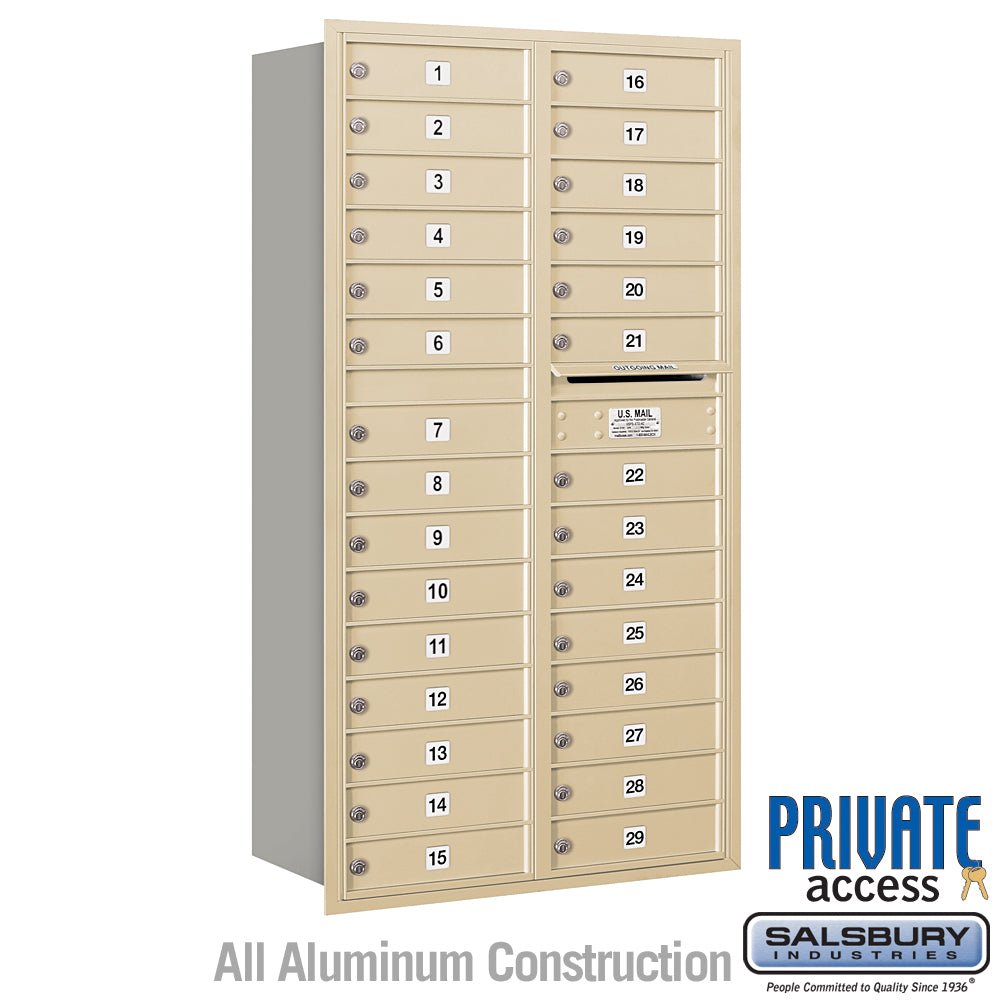 Maximum Height Recessed Mounted 4C Horizontal Mailbox with 29 Doors - Sandstone - Rear Loading