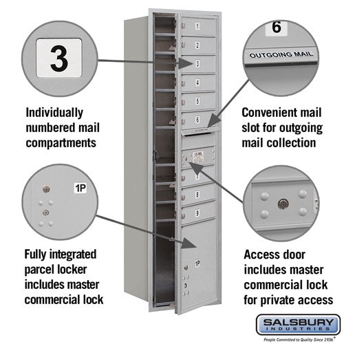 Outgoing Mail Compartment Includes master commercial lock access door and mail slot with weather protection hood