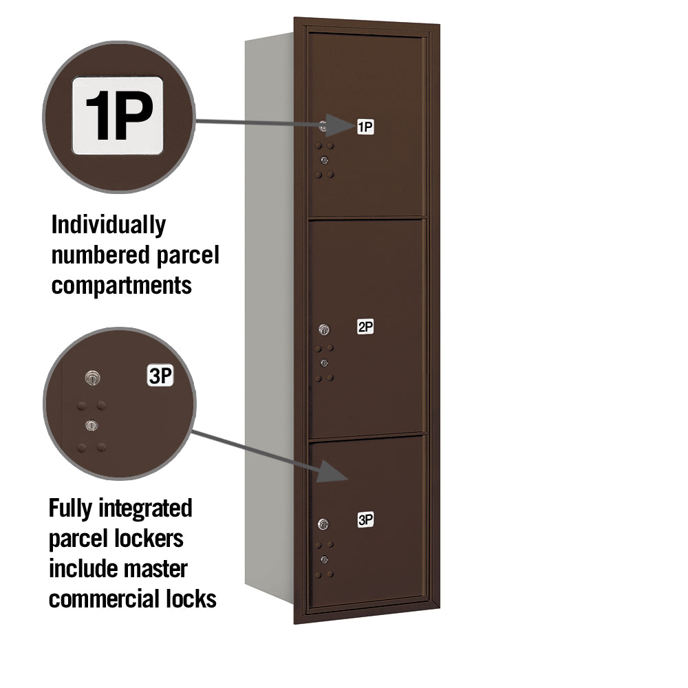 Maximum Height Recessed Mounted 4C Horizontal Parcel Locker with 3 Parcel Compartments - Bronze Rear Loading