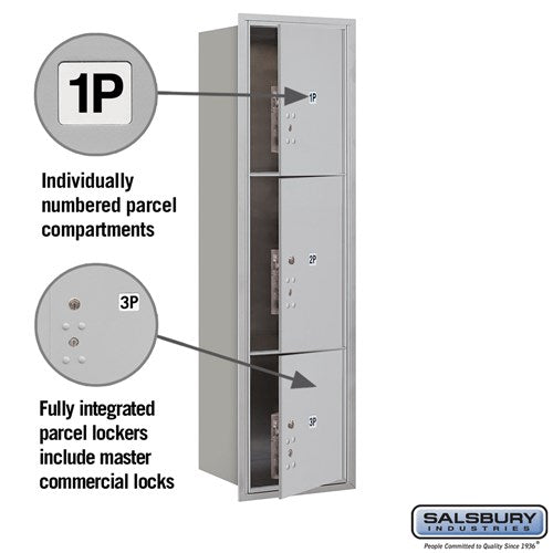 Maximum Height Recessed Mounted Parcel Locker with 3 Compartments - Front Loading