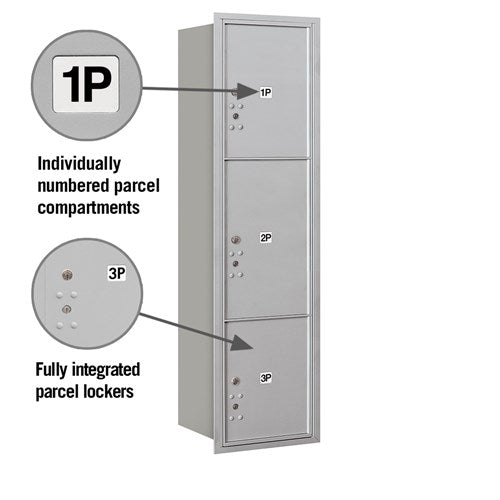 Maximum Height Recessed Mounted Parcel Locker with 3 Compartments - Rear Loading