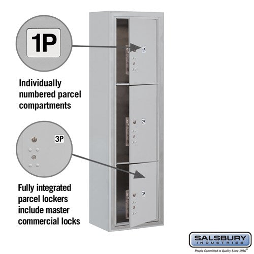 Maximum Height Surface Mounted 4C Horizontal Parcel Locker with 3 Parcel Lockers in Aluminum