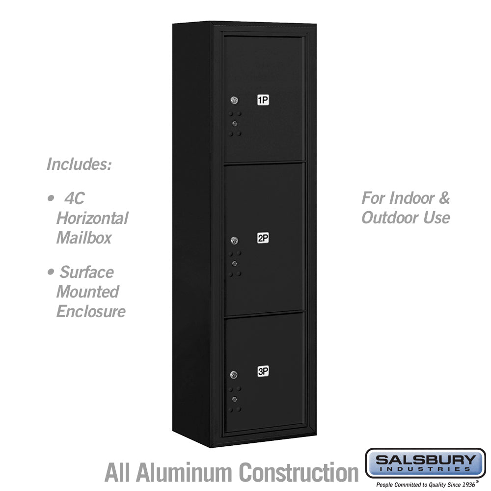 Maximum Height Surface Mounted 4C Horizontal Parcel Locker with 3 Parcel Lockers in Black with USPS Access