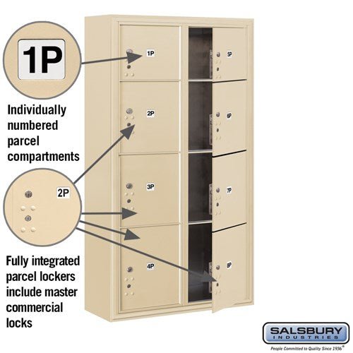 Maximum Height Surface Mounted 4C Horizontal Parcel Locker with 8 Compartments in Sandstone