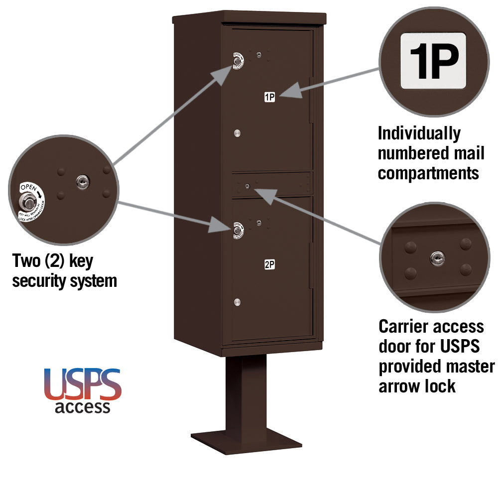 Outdoor Parcel Locker with 2 Compartments in Bronze with USPS Access