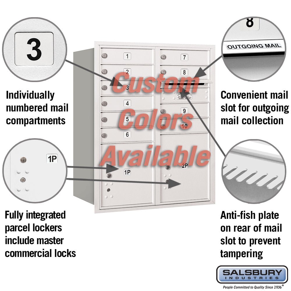 | Additional Features | Includes master commercial locks, anti-fish plate on mail slot, convenient outgoing mail slot |