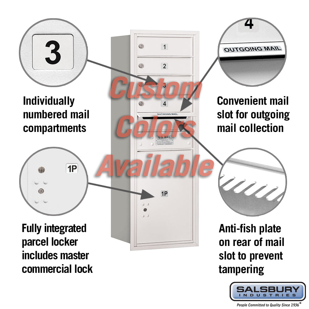 The Recessed Mounted 4C Horizontal Mailbox is a durable and secure solution for private mail access. Constructed with heavy-duty aluminum and stainless steel hardware, it features a powder-coated finish and ADA compliance for versatile use.