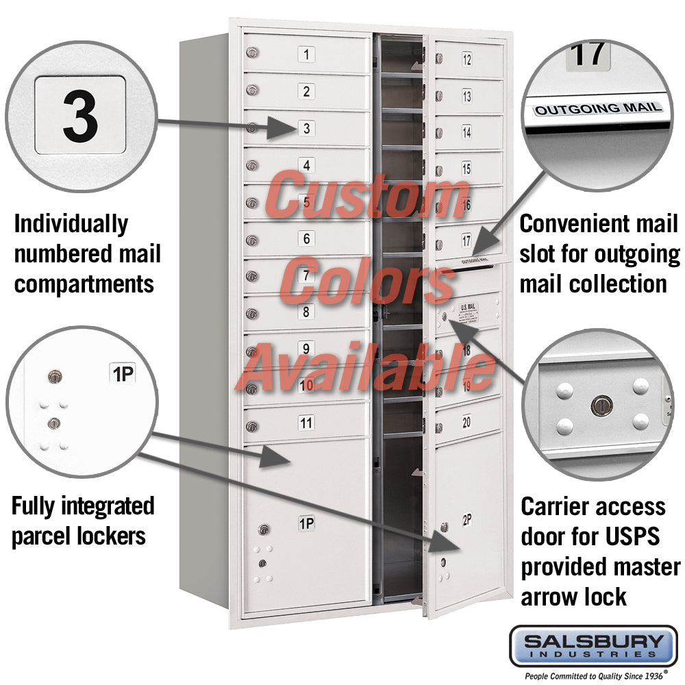 | Outgoing Mail Compartment | Includes mail slot with weather protection hood and USPS master lock access door |