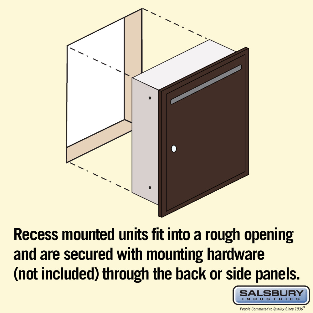 The Recessed Mounted Bronze Letter Box is a durable and stylish solution for mail storage, featuring extruded aluminum construction and a powder-coated finish. Designed for USPS access, it fits seamlessly into rough openings and is ideal for apartments, condominiums, and commercial buildings.