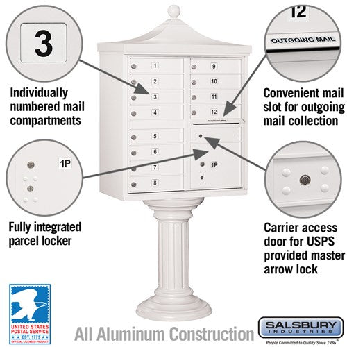 The Regency Decorative Cluster Box Unit transforms any outdoor setting into a sophisticated and functional space. Its durable aluminum construction and powder-coated finish ensure lasting beauty and resilience. The decorative top and pedestal cover add a touch of classic charm, making it a perfect centerpiece for residential or commercial developments. Incorporate this unit to seamlessly blend utility with style, creating an inviting and organized environment.