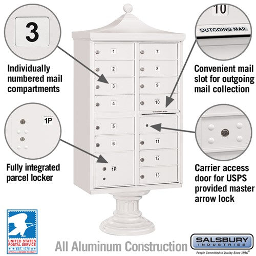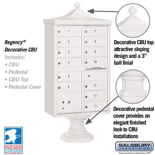 Regency Decorative Cluster Box Unit with 13 Doors and Parcel Locker in White