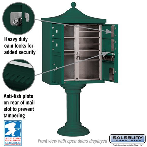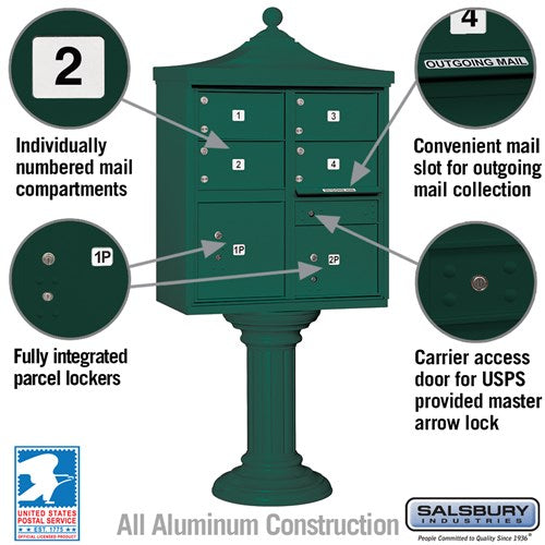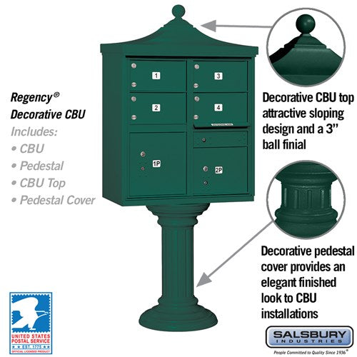 Regency Decorative Cluster Box Unit with 4 Doors and 2 Parcel Lockers in Green with USPS Access