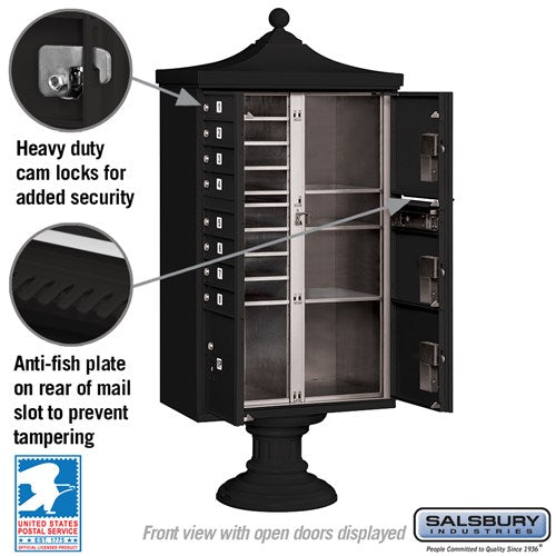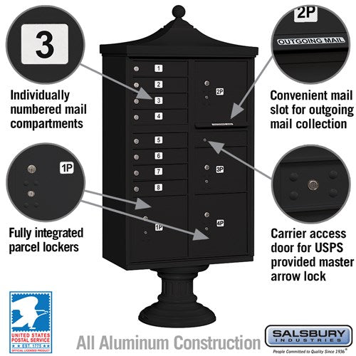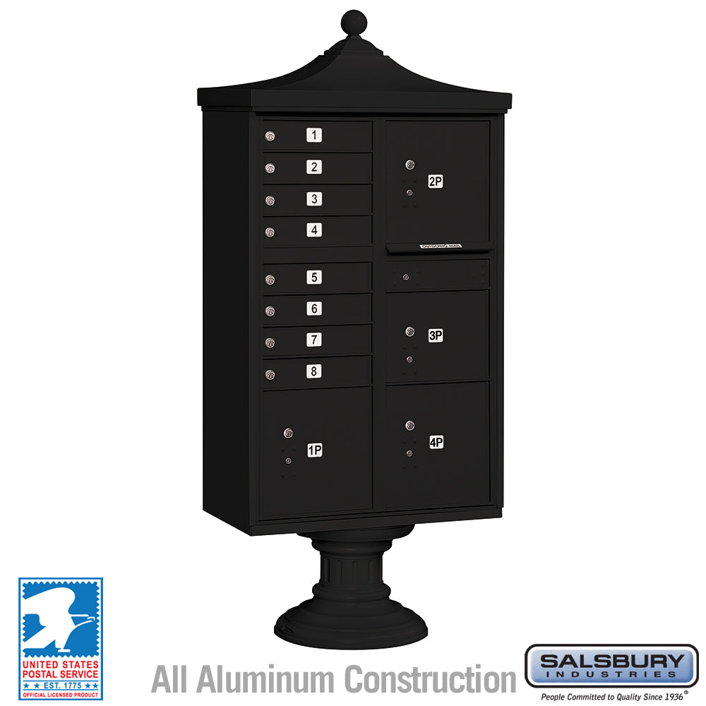 Regency Decorative Cluster Box Unit with 8 Doors and 4 Parcel Lockers in Black with USPS Access