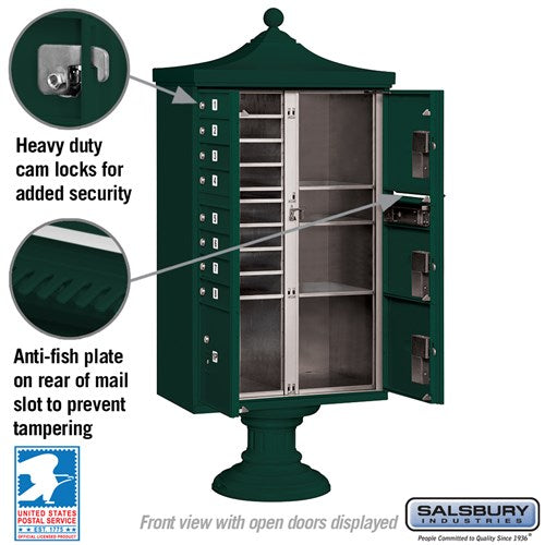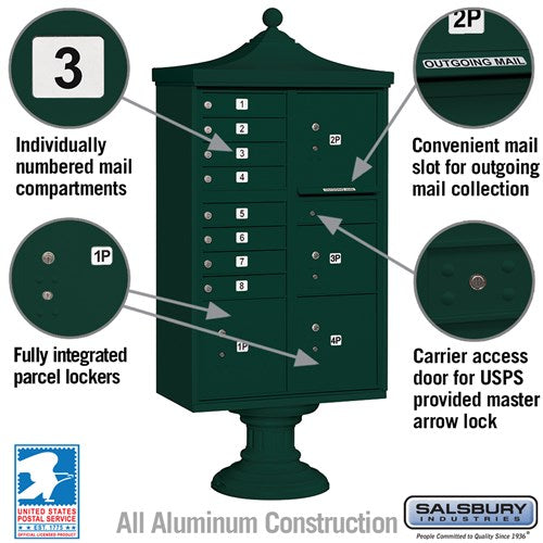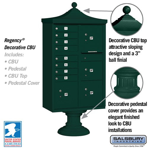 Regency Decorative Cluster Box Unit with 8 Doors and 4 Parcel Lockers in Green with USPS Access