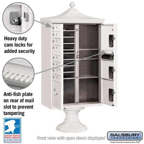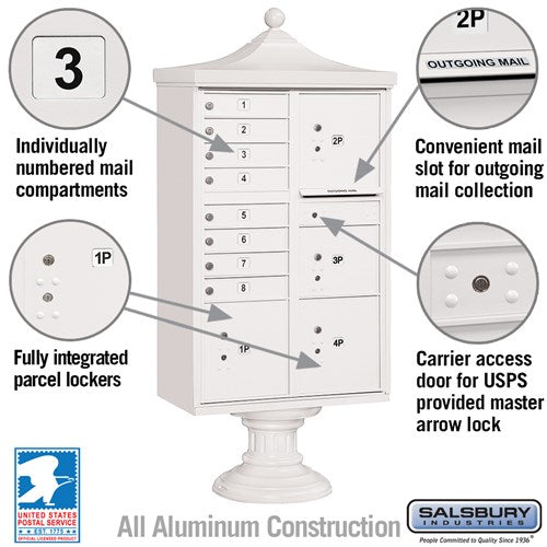 Regency Decorative Cluster Box Unit with 8 Doors and 4 Parcel Lockers in White with USPS Access